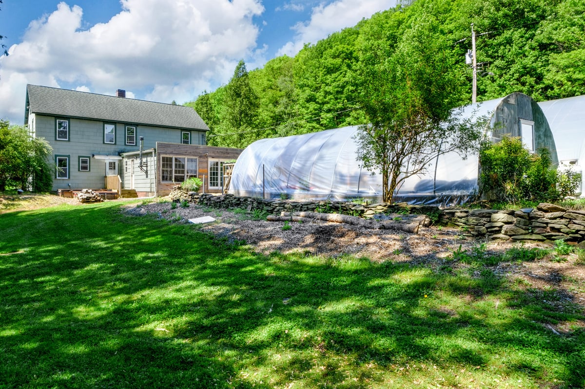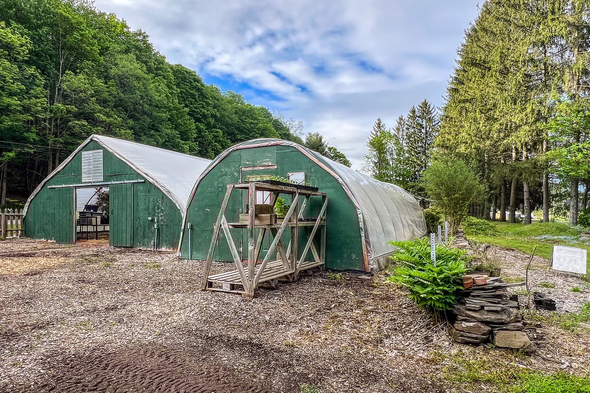 This upstate New York farm property in the village of Delhi, NY expresses the dream of rural living. With a feeling truly from another time, and yet a part of a vibrant Catskills culture, the property connects historic charm with modern community life. This one-of-a-kind, multi-use property offers spectacular architecture, rich earthy aromas, and classic greenhouses that creates sense of possibility and bounty. In the often fickle climate of the Catskills, the greenhouses provide a daily horticultural experience. Think unusual flora, dramatic succulents, flowing pageantries, and a perpetual potager that keeps meals diversified all year long.
