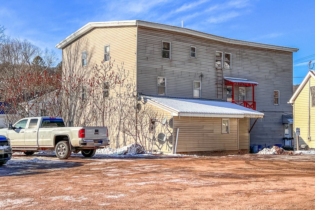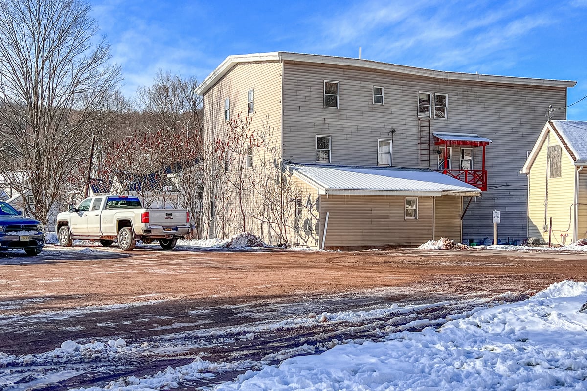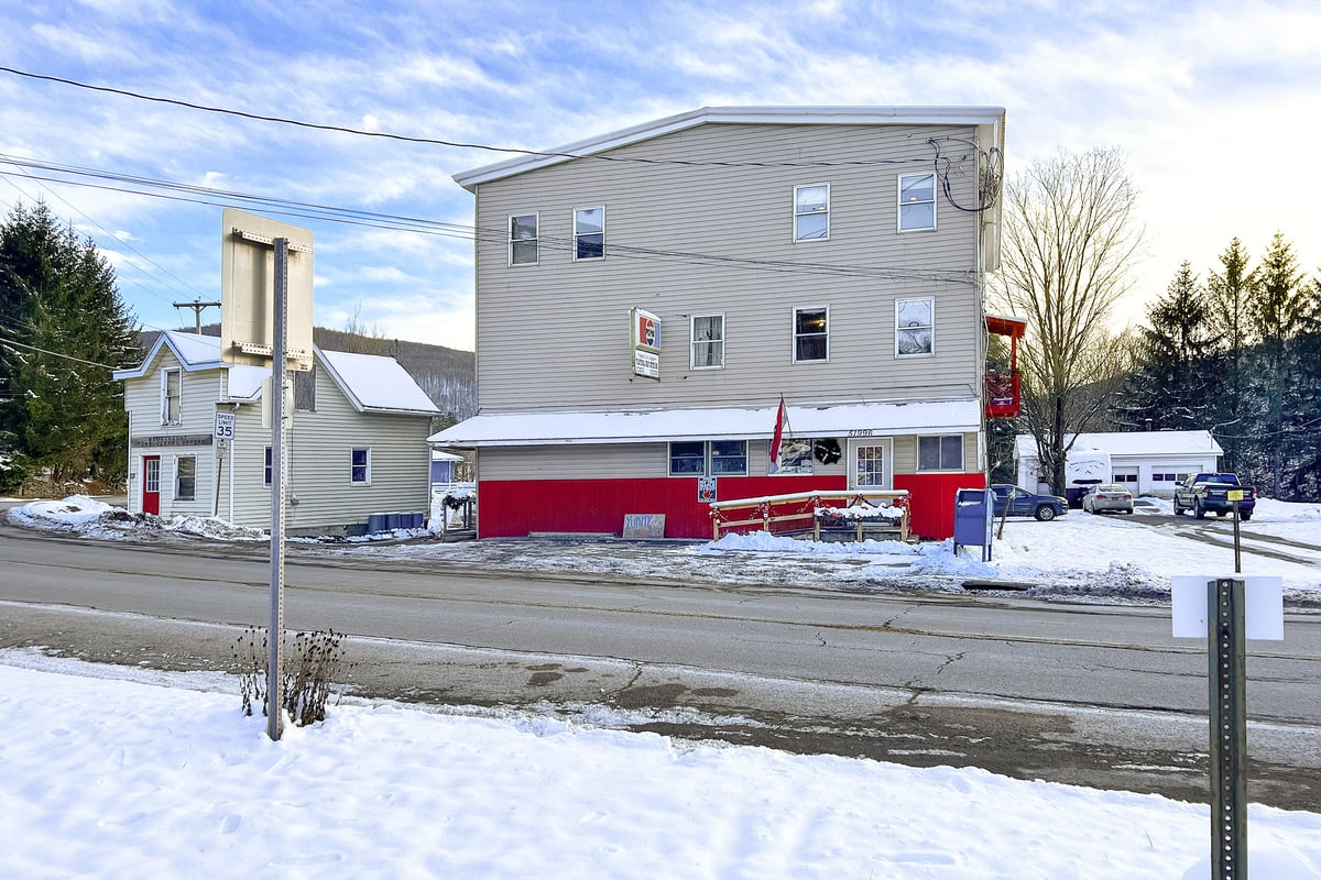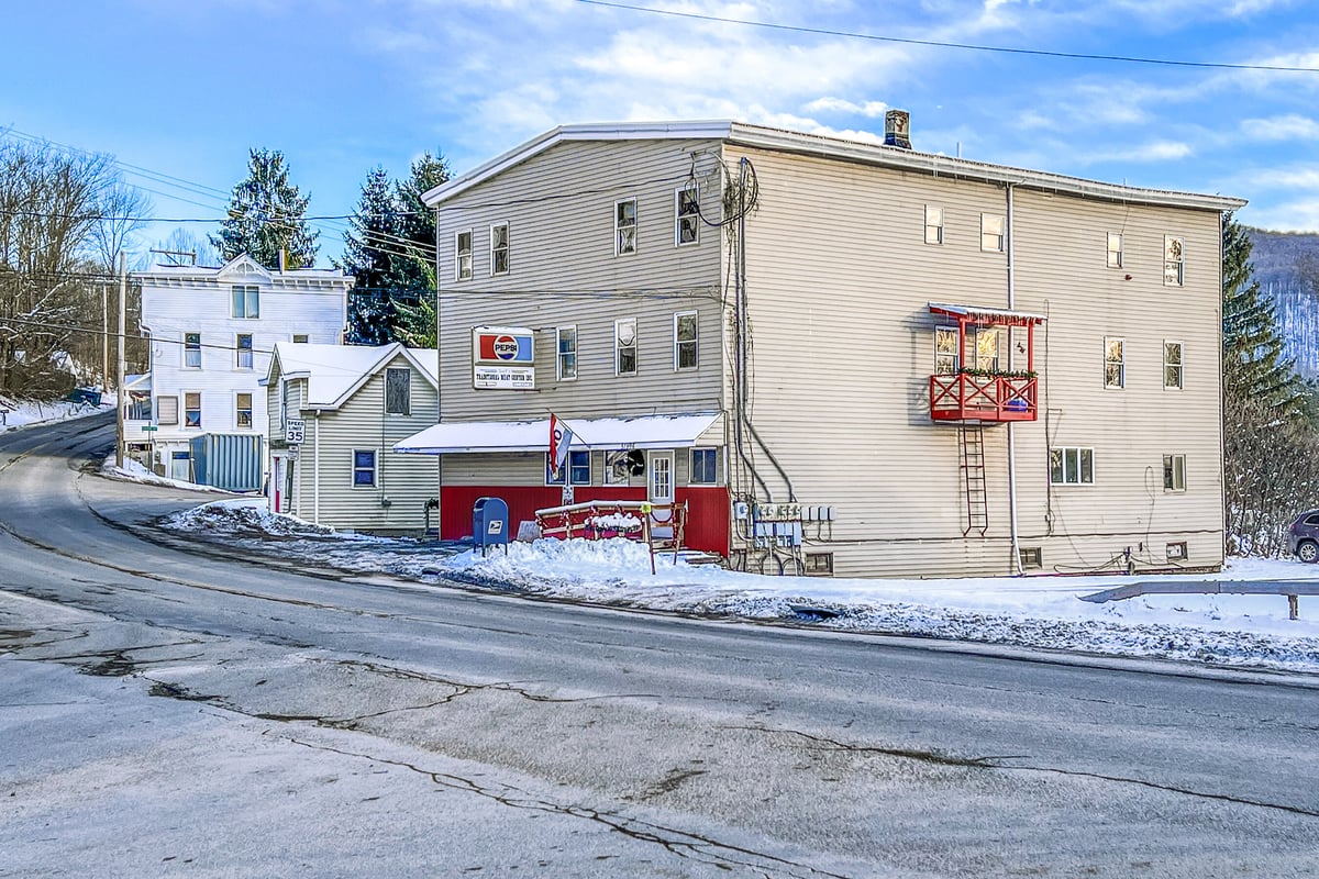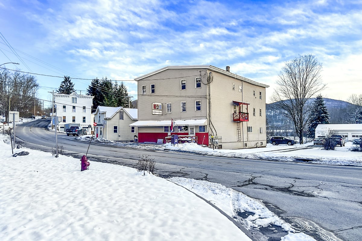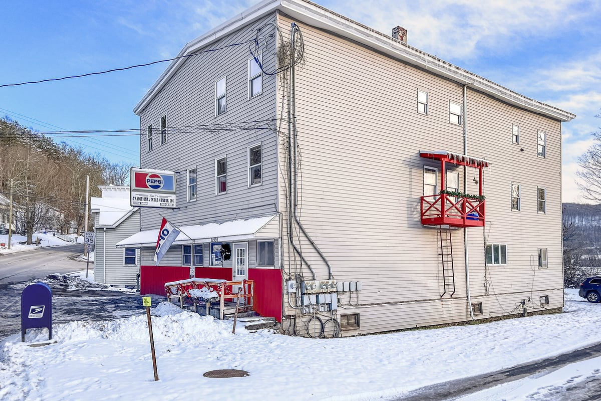 This property is a terrific two-fer, with both commercial and residential income right in the heart of the Great Western Catskills. Bloomville, NY is on the up and up. Time to leave your mark on the map. Picture a 4-bedroom penthouse, extra apartments, and a deli that brings in over $200k in sales each year. It's all about location, location, location—over 2000 cars pass this prime spot regularly. Nestled between Stamford and Delhi, this is the go-to “corner grocery” where pals gather for coffee, a sub, or to snag their custom cuts of meat. It's the only deli of its kind within a 70-mile radius—a truly rare gem for an owner-operator to dive into a well-established business! AND you'll adore the little CLERK’S OFFICE - a separate little treasure all on its own. Think coffee shop, outdoor café, or just fabulous extra storage...This package includes three tax IDs: 105.4-6-15, 105.4-6-16, 105.4-6-17.